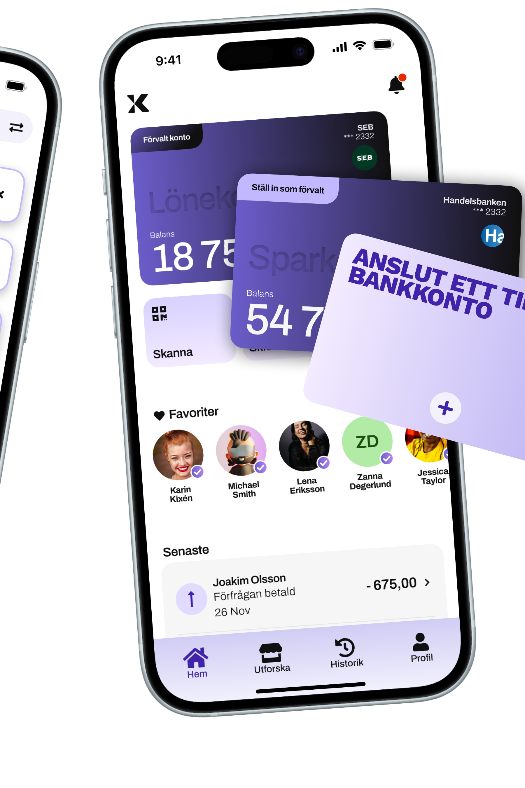 Du kan välja bankkonton hos de banker vi integrerat med. Se till att det inte ligger någon spärr för att ta emot och skicka pengar till det bankkonto du vill ansluta. Det kan göra det på t ex bankkonton som är gemensamma med en annan familjemedlem.